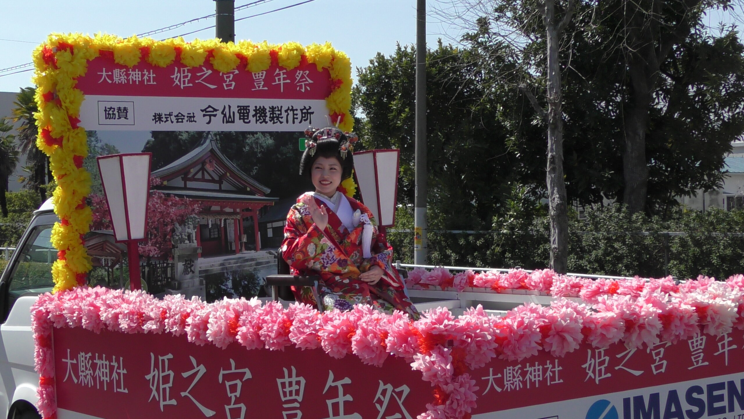 Every March Imasen participates in the Himenomiya Hounensai at Ooagata Shrine, which is said to be “the festival that calls spring to Owari.” to pray for a good harvest and national peace. Specifically, this involves lending use of our Head Office building as a resting place for those engaged in the Daikagami Mochi dedication ceremony, as well as the provision of lead cars and decorated carriages in the float procession.